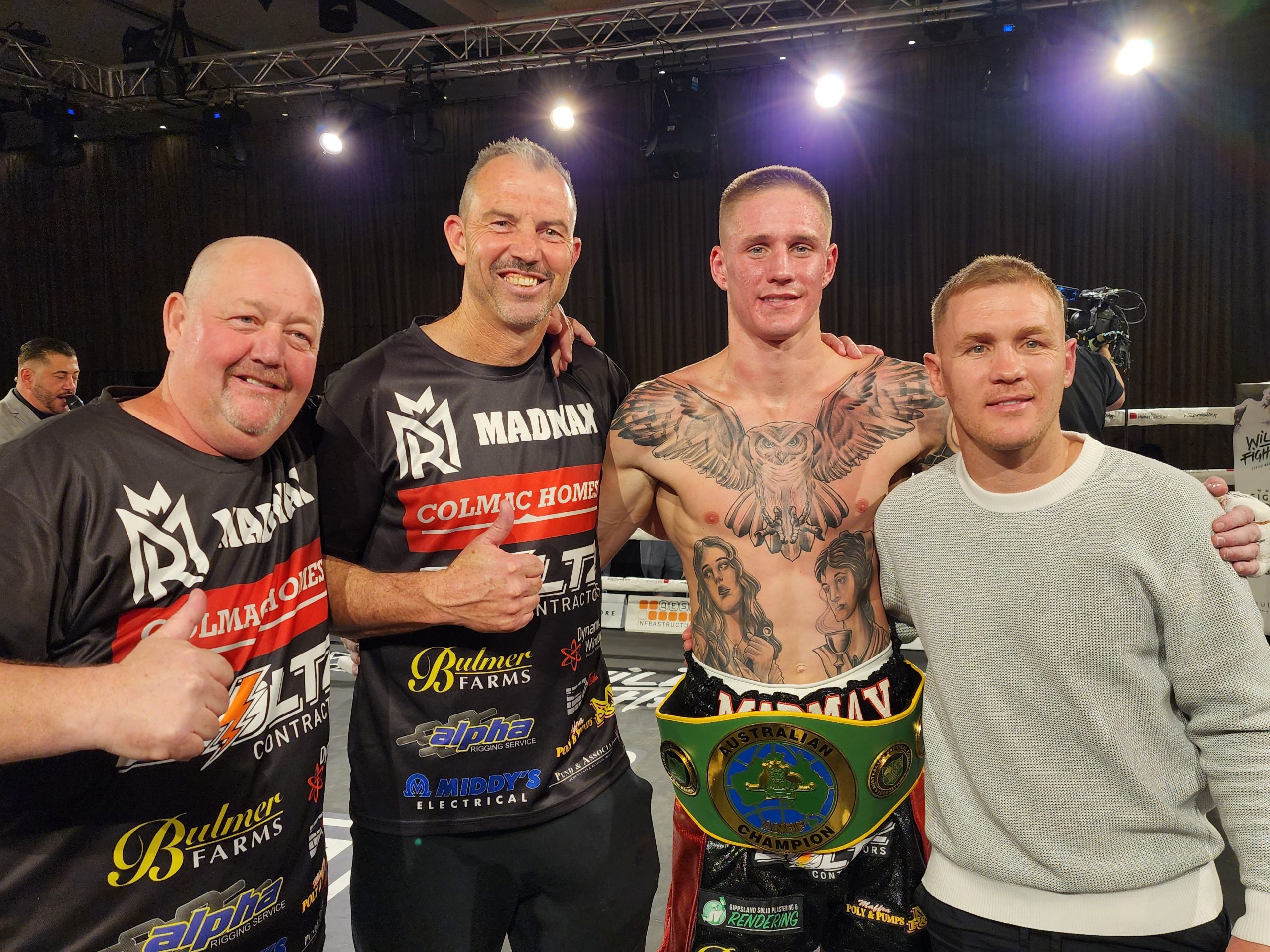 The co-main event on the Will Tomlinson show of 2nd September 2023, saw the mandatory challenger Max Reeves meet Joe Corner for the vacant Australian Super-Middleweight title. Max weighted in at 76.0 kg and Joe at 74.0 kg. The fight saw Max as the bigger and stronger boxer and the aggressor, landing well, and clearly winning the first two rounds. Joe was knocked down toward the end of the third round. Joe showed great character throughout the fight in attempting to match his stronger opponent, and in surviving the third round. Joe was knocked down again in the fourth round after which the referee stopped the congest. The ANBF congratulates both Max and Joe on a great fight, and Max for becoming the new Australian Super-Middleweight champion.